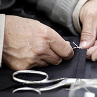 在制衣過(guò)程中,顧客需試穿毛樣(半成品)2一3次。量體師會(huì)對(duì)顧客與樣衣進(jìn)行細(xì)致的測(cè)量,并聽(tīng)取顧客試穿感覺(jué)給予修改意見(jiàn),對(duì)服裝的細(xì)節(jié)不斷完善。